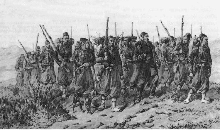 Подразделение зуавов на марше. Рис. Орландо Нори. 1854 г.