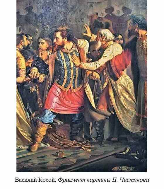 Отношения между сыновьями Юрия Галицкого не были гладкими. Все они отличались конфликтностью и не очень-то любили друг друга. Двое младших, Дмитрий Шемяка и еще один Дмитрий, но с благозвучным прозвищем «Красный» (в те времена бывало, что братьев называли одинаково, если так выходило по святцам) объявили Косому, что отказываются ему подчиняться. Василий Юрьевич, судя по его дальнейшим поступкам, был личностью малоприятной, да и не хотелось братьям попасть под власть того, кого они привыкли считать себе ровней. Ревность оказалась сильнее семейной солидарности. У историков, впрочем, есть и иное предположение: младшие братья были дальновиднее старшего и понимали, что долго он в Москве не продержится. Однако непохоже, что Шемяка и Красный блистали умом, – их дальнейший жизненный путь такого предположения не подтверждает.