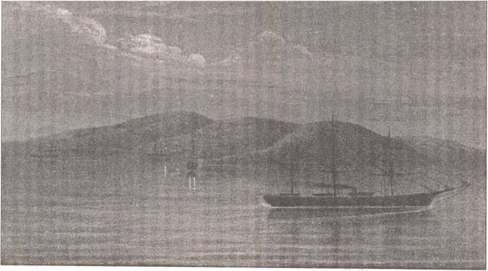 Четверг, 3 декабря. С рассветом увидел у входа в бухту острова Кандор судно под французским флагом. Послал шлюпку разведать местность. В час пополудни шлюпка возвратилась с командиром французского военного судна. Я с удивлением узнал, что мы находимся в цивилизованном крае и что остров Кандор принадлежит французам. На восточной стороне острова есть казармы для 50—60 человек гарнизона.
