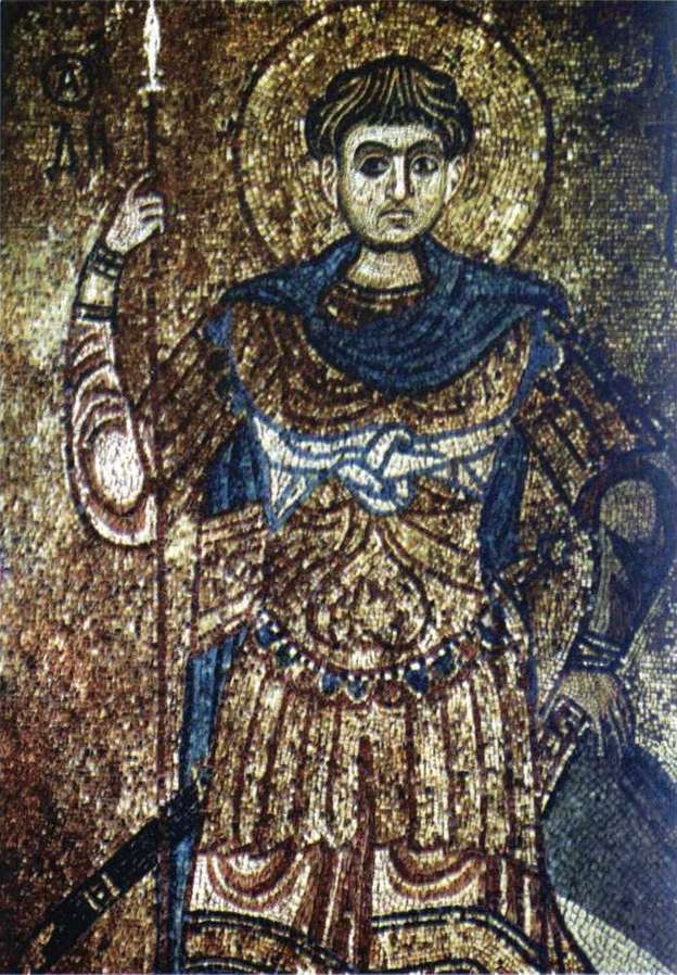 Дмитрій Солунський. Мозаїчне зображення з Михайлівського Золотоверхого собору. XII ст.