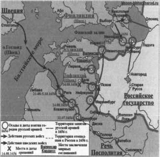 В кампании 1658 года против Швеции московские войска продолжили контрнаступление. Пятитысячный отряд князя И.А. Хованского овладел Ямбургом и подошел к Нарве. Но в феврале 1658 года Дания, являвшаяся главным союзником Алексея Михайловича, прекратила военные действия и подписала со Швецией мирный договор, что позволило шведам активизировать свои действия против московских войск. Губернатор Нарвы Густав Горн перешел в контрнаступление, сковал отряд Хованского под Нарвой и отбил обратно Ямбург с Ниеншанцем. Несмотря на отдельные неудачи, тактика «выжженной земли», используемая московскими войсками, усугубленная моровым поветрием и подкрепленная превосходством царских войск «полковой службы», поставила шведов в Эстляндии в критическое положение. Это позволило прекратить боевые действия со Швецией, а 20 декабря 1658 года было заключено Валиесарское перемирие с ней сроком на три года. Согласно этому перемирию Московское государство удержало за собой часть завоеваний в Ливонии (с городами Дерпт и Мариенбург), но ненадолго. После истечения срока этого перемирия и во избежание одновременной войны со Швецией и Польшей Москве в 1661 году пришлось подписать Кардисский мирный договор, по которому она отказывалась от всех своих завоеваний 1656–1658 годов в Прибалтике в пользу Швеции. Единственным позитивным результатом этой войны стало то, что по ее итогам в московском войске было увеличено количество полков нового строя. В частности, произошли серьезные изменения в личном составе конницы: дворяне сотенной службы массово, переводились в рейтарские полки.