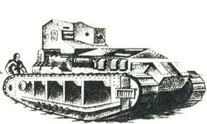 Вооружение — три пулемета и две 57-мм пушки, расположенные по бортам в так называемых «спонсонах». Так располагалось вооружение на боевых судах того времени, и на развитие конструкторской мысли авторов «сухопутных броненосцев» действовала идея подобной установки вооружения. Экипаж — 8 человек, из которых 4 были заняты управлением. В управлении участвовали: командир, приводящий в действие тормоза гусениц, механик-водитель, в распоряжении которого имелась коробка передач, и два помощника — переключавшие передачи в бортовых коробках, если нужно было повернуть с малым радиусом. А для поворота с большим радиусом экипаж с помощью троса, накручиваемого на барабан, поворачивал тележку с огромными хвостовыми колесами. Были в этом танке и средства связи — почтовые голуби, полузадохшиеся от проникаемых в боевое отделение газов.