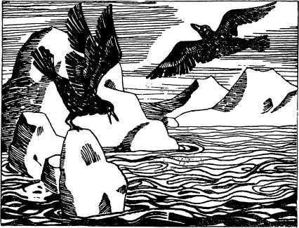 И вот сводные братья подходили к Исландии. Свежий ветер подгонял корабли. Четко вырисовывались контуры голов драконов на носу и длинные, извивающиеся священные змеи на парусах. А в туманной дымке уже угадывались белые шапки гор Исландии. Не пора ли бросать в воду три священных столба? Ингольв взял их с собой из дому. Они всегда стояли у него на самом почетном месте. С глубоким уважением Ингольв относился ко всем языческим обрядам и всегда их соблюдал. Перед отплытием в Исландии он принес обильную жертву главному богу своего народа — Одину. Его всегда изображали в окружении священных воронов. Легенда говорит, что вороны указали Флоки путь к Исландии. Он выпустил их со своей ладьи, и они полетели к ближайшему острову. Это и была Исландия. Теперь Ингольв ждал, что священные столбы, брошенные в океан, прибьются непременно к той части берега, где удобнее всего будет жить первопоселенцам.