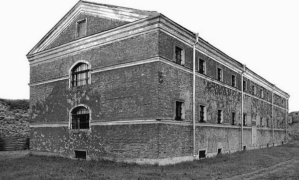 Белое здание было не что иное, как старая историческая тюрьма, рассчитанная всего на 10 узников. По позднейшим рассказам, в самой толще ограды, в стенах цитадели был ряд камер, где будто бы еще стояла кое-какая мебель, но потолки и стены обвалились, все было в разрушении. И в самом деле, снаружи были заметны следы окон, заложенных камнем, а в левой части, за тюрьмой, еще сохранилась камера, в которой жил и умер Иоанн Антонович, убитый при попытке Мировича освободить его.