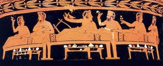 Среди людей Эрот порождает приязнь, собирает их на дружеские собрания (заметим, что именно «дружеские») и празднества. Он терпим к добрым, чтим мудрецами, опекает благородных, обогащает удачливых, создает роскошь и изящество, приносит радости, наставляет и помогает в помыслах и томленьях, сопровождает и спасает, украшает богов и людей и руководит их жизнью.