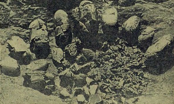 Гнездо яиц динозавра, найденное американской экспедицией в Монголии в меловых породах.
