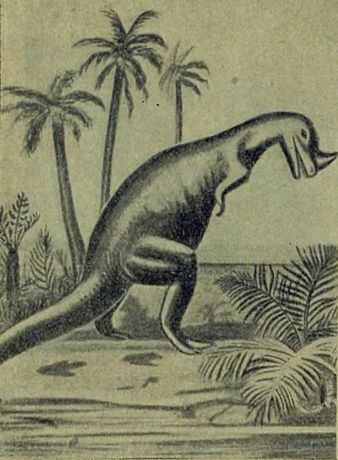 Родоначальником этих ящеров был, возможно, анхизавр. Это был свирепый хищник, который не признавал другой еды, кроме сырого мяса. Он ходил очень странным, необычайным для животных способом, почти всегда только на задних ногах. Это давало ему большое преимущество: передними ногами он мог драться и убивать врагов. Размножались анхизавры, вероятно, таким же способом, как и большинство других ящеров, — откладывая яйца.
