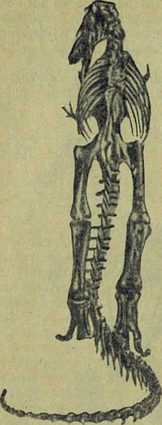 Потомки анхизавра размножились особенно во второй половине мезозойской эры. Они были очень разнообразные. Некоторые остались хищниками, с передними ногами, более короткими, чем задние. Эти ящеры передвигались, наверно, огромными прыжками как нынешние кенгуру; у них был толстый и очень сильный хвост, он помогал им при прыжках: хвостом вместе с задними ногами отталкивались они от земли и, когда сидели, тоже опирались на хвост.