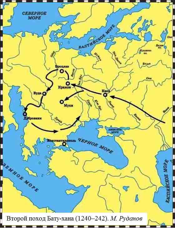 Историки по-разному излагают и оценивают течение Европейского похода Бату-хана, однако, поскольку события происходили за пределами Руси и напрямую не связаны с нашей темой, я коротко опишу лишь общий ход боевых действий.
