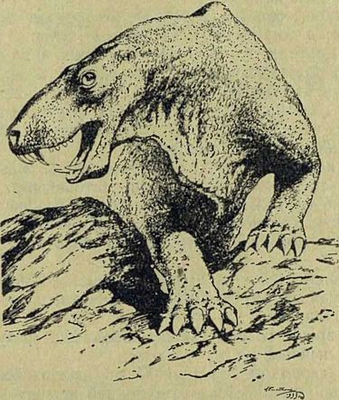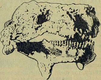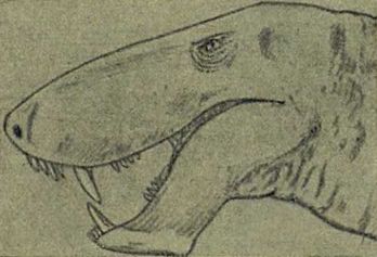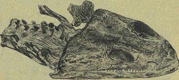 У таких животных черепа были очень широкими и плоскими, настоящими захлопывающимися коробками; челюсти у них были усажены частыми мелкими зубами, да еще на нёбе росло несколько больших острых зубов. Это были большие и сильные тупомордые животные; но не они дали начало новым, высшим животным.