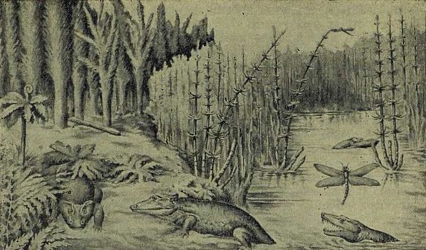 Это было время господства земноводных; сразу после пермского периода начинается их упадок.