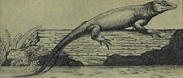 Так же, как родоначальником земноводных мы считаем тинопуса, потому что его отпечаток на камне — самое древнее свидетельство о земноводных животных, какое мы имеем, так же можем мы один из окаменевших скелетов, найденных в земле, считать за самое древнее свидетельство о появлении новых животных — пресмыкающихся.