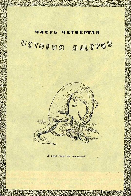 Огромное большинство пресмыкающихся древних времен были крупные и сильные животные — ящеры. И именно от ящеров произошли и все нынешние четвероногие звери, и птицы, и человек.