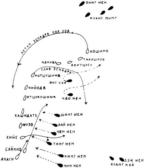 Тем временем японцы по громадным клубам дыма догадались, что перед ними весь китайский Северный флот целиком. Ито понял, что это его звездный час. Упускать его было нельзя, и времени на разработку плана боя у Ито не было. Ситуация была аховая: вот он, флот, за которым гонялись больше месяца, и вот она, японская эскадра, которая может этот флот уничтожить. Но как это сделать?! На одном за другим кораблях японской эскадры поднимались сигналы: «Вижу противника» и «Вопросительный» до места. Надо отдать должное японским командирам: каждый из них сыграл боевую тревогу самостоятельно, на всех кораблях был подан боезапас и вывалены шлюпки. Теперь трудно судить, послужила ли такая боевая слаженность успокоению и здравомыслию японского адмирала, но, увидев безупречные и грамотные действия своих командиров, Ито принял единственно правильное решение: атаковать китайцев с ходу, указания кораблям передавать флажными сигналами. Бой вести, используя тактику адмирала Цубои, о которой безусловно знали все командиры. Первым сигналом адмирала было «Держать строй кильватера, следовать за мной, быть готовым к циркуляции». Так же, как Цубои в предыдущем бою, Ито намеревался сосредоточить всю мощь японской артиллерии по китайцам на циркуляции, когда в одной точке по отношению к противнику поочередно оказываются все корабли ордера. Это давало возможность непрерывного огня до полного уничтожения противника, и одновременно сильно затрудняло ответный огонь по постоянно маневрирующей цели. Для того чтобы воспрепятствовать отступлению китайского флота, Ито разделил свой отряд на два в соответствии с боевыми возможностями кораблей, но задачу поставил одну и ту же: уничтожение максимально возможного числа китайских кораблей артиллерией.