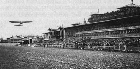 Впрочем, в историю Петербурга Коломяжский ипподром вошел не только благодаря скачкам и дуэлям, но в первую очередь потому, что стал местом рождения русской авиации. С 1908 года, когда в столице возник Императорский Всероссийский аэроклуб, ипподром использовался для испытания летательных аппаратов, а в мае 1910 года здесь состоялась первая в России Авиационная неделя. Огромная толпа заполнила не только трибуны Коломяжского ипподрома, но и всю близлежащую местность, включая заборы и деревья.