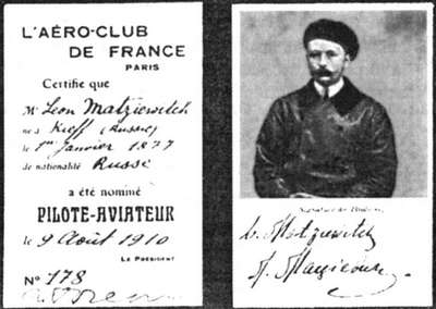 Летное удостоверение Л.М. Мациевича. Фото из журнала «Воздухоплавание». 1910 г.