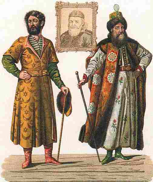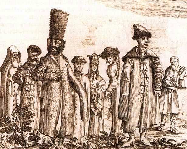 Национальные костюмы московитов Из книги А. Олеария «Новое дополненное описание путешествия в Московию и Персию». 1656