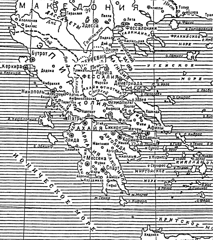 Одновременно с религиозным объединением европейской Греции происходило административное расформирование греко-македонского наместничества Римской республики. Оно не было связано с распределением административных ведомств в империи между императором и сенатом, так как вся эта область, равно как и лежавшие перед ней придунайские земли, при первоначальном разделе была предоставлена сенату; столь же малое значение имели здесь соображения военного порядка, так как весь полуостров до самой фракийской границы всегда считался мирной внутренней областью, ибо ее защищали эти придунайские земли и гарнизоны на Дунае. Если Пелопоннес и аттико-беотийские области получили в то время собственного проконсула и были отделены от Македонии (что, быть может, замышлял осуществить еще Цезарь), то наряду с общей тенденцией — не делать сенаторские наместничества слишком крупными — при этом, вероятно, сыграло решающую роль желание отделить чисто эллинскую область от полуэллинской. Границей провинции Ахайи первоначально была гора Эта; даже после того, как к этой провинции была присоединена Этолия111, в ее состав никогда не входили области, лежащие за линией Ахелоя и Фермопил.