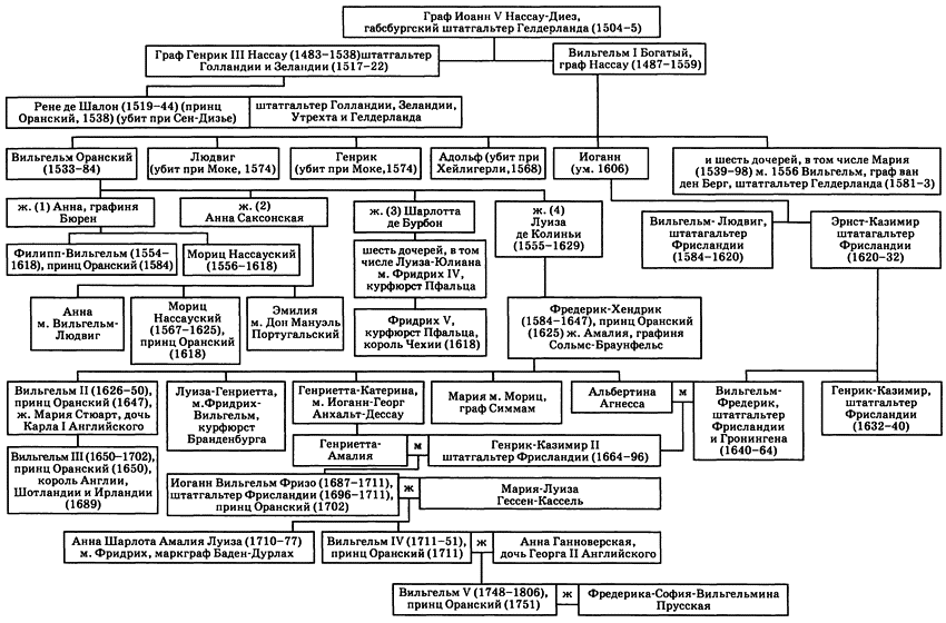 Генеалогическая таблица Оранско-Нассауской династии в Нидерландах.