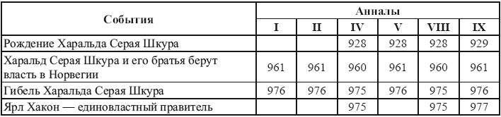 Основные вехи жизни конунга Харальда Серая Шкура, согласно анналам[295], приведены в табл. 8.