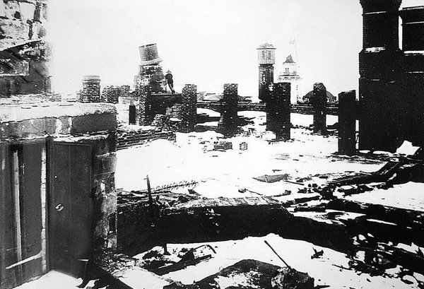 Страшно смотреть и сейчас на фотографии присыпанных снежком руин сожженного Шлиссельбурга.