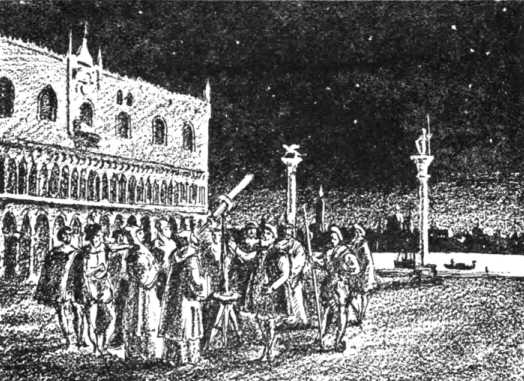 то время как Кеплер обдумывал результаты своих наблюдений над кометой 1607 года, в Венеции жил ученый, уже прославившийся своими наблюдениями небесных светил, — Галилео Галилей. Он был первым, кто использовал для астрономических целей изобретенную в то время зрительную трубу. Он усовершенствовал этот прибор, предназначавшийся его изобретателями для рассматривания наземных предметов. Первая построенная им труба увеличивала всего в три раза, но скоро Галилею удалось построить трубу, дающую увеличение в 30 раз. Эта труба по своему устройству напоминала современный театральный бинокль. В ней переднее стекло, называемое объективом, было двояковыпуклое, а стекло, обращаемое к глазу, окуляр, двояковогнутое.