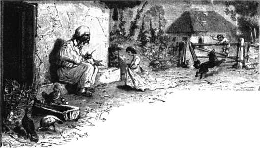 Дедушка воспитывает внуков. Со старинного рисунка.