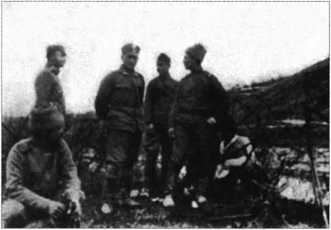 Мы с увлечением прислушивались к хоровому пению. Такие концерты российских воинов повторялись часто, и в это время перестрелки прекращались. Оказалось, что перед нами стояли части, в которых преобладали украинские военные. Это они давали нам эти хорошие концерты. На Пасху в воскресенье до полудня, мы услышали величественную песню «Христос Воскрес». Вскоре из российских окопов появились белые флажки и из них высунулось несколько солдат. Когда они увидели, что им не грозит опасность, потому что с нашей стороны не было ни одного выстрела, их примеру последовали остальные воины, которые растянулись вправо и влево по всему ихнему фронту. Отделилось пять воинов, которые перелезли через колючую проволоку и пришли к нашим окопам. Я с двумя нашими воинами пошел им навстречу. Один из них, подавая мне руку, от имени их солдат пожелал нам, нашим командирам и солдатам, счастливых и радостных Пасхальных Праздников и, чтобы мы здоровые вернулись в свои родные места. Он говорил мне по-русски, а когда я повторил те же пожелания по-украински, он удивленно сказал на украинском: «Видимо, на обоих фронтах воюют украинцы друг против друга». После этого мы разговорились на своем. Увидя, как мы так взаимно приветствовали друг-друга, вся масса воинов с российской стороны двинулась к нам, на что наши воины ответили так же. Наступила минута взаимных приветствий, объятий и радости, и люди, которых война сделала кровожадными зверями снова стали людьми. Думаю, что никакая дисциплина, никакая сила не смогла бы помешать этому нормальному поведению людей, которых объединяла одинаковая судьба…» (147, 77–78).