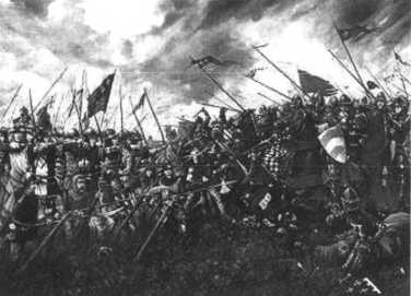 Минуло всего тринадцать лет, и на другом конце Европы, в Швейцарии, при горе Моргартен, пехота швейцарских кантонов сокрушила рыцарское войско австрийского императора. 26 августа 1346 года английский король Эдуард III разгромил 10-тысячное рыцарское войско французского короля Филиппа VI в битве при Кресси. Войско Эдуарда III было сформировано из английских горожан, ремесленников и крестьян, вооруженных луками и арбалетами, а 4 тысячи английских рыцарей во время боя спешились и встали в ряды стрелков. Французы потеряли 1200 рыцарей. 19 сентября 1356 года сын Эдуарда III Эдуард Чёрный в битве при Пуатье с двумя тысячами стрелков из луков и арбалетов расстрелял около трех тысяч французских рыцарей.