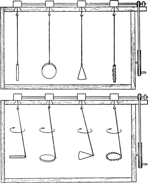 Рис. 10. Некоторые предметы, висящие в спокойном состоянии и в процессе вращения.