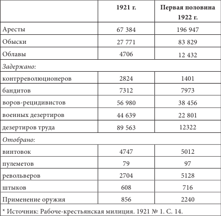 Начавшаяся со второй половины 1921 г. относительная стабилизация жизни в бывшей столице, казалось бы, должна была привести к снижению уровня преступности. С ликвидацией дефицита основных продуктов питания и предметов первой необходимости исчез один из главных стимулов к правонарушениям, а правоохранительные органы стали организованнее и обеспеченнее технически. Однако оживление предпринимательской деятельности с введением нэпа стимулировало новое усиление бандитизма: появились шайки, специализировавшиеся на грабежах «нэпманов» – богатых торговцев и предпринимателей. Сравнение результатов работы милиции за 1921 и первую половину 1922 г. (см. табл. № 2) говорит не только об усилении ее эффективности, но и о новом оживлении криминального мира. За 1922 г. было зарегистрировано в общей сложности 26 710 правонарушений – почти на 10 тысяч больше, чем в 1920 г. (16 806)[357]. Говорить о реальном снижении уровня преступности можно лишь применительно к середине 1920-х гг. (количество зарегистрированных преступлений за 1923, 1924 и 1925 гг., соответственно, – 18 452, 16 650 и 7899)[358].