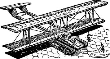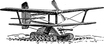 На 5-тонную колесо-гусеничную машину своей конструкции он задумал установить бипланную коробку, к которой на двух трубчатых балках крепилось крестообразное хвостовое оперение. На верхней плоскости, спереди, был пропеллер с редуктором. Колеса помогали танку разогнаться до скорости 120–135 км/ч. На этой скорости конструкция могла взлететь. При взлете первые 70–80 м машина должна была разгоняться на гусеницах, затем водитель переключал мотор на винт.