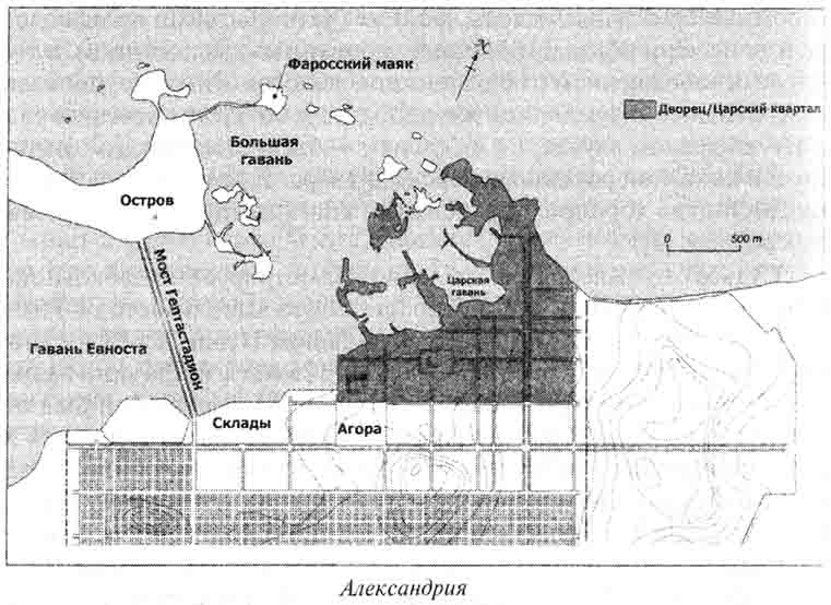 По сравнению с Римом Александрия была молодым городом. По одной оценке, ее население составляло около полумиллиона человек, т. е. гораздо больше, чем в любом другом городе греко-римского мира, за исключением сирийской Антиохии. Она определенно была более величественной, чем Рим, а поскольку город возвели по указанию Александра Великого, он был распланирован в соответствии с лучшими традициями эллинистической архитектуры. Две главных улицы, расположенных под прямым углом друг к другу, могли достигать 30 м в ширину. Александрия стояла на берегу огромной гавани, а на острове на краю залива возвышался Фаросский маяк, одно из семи чудес Древнего мира. Царский квартал, обращенный к морю, состоял из множества роскошных дворцов, поскольку существовала традиция, согласно которой каждый новый правитель строил собственный дворцовый комплекс. Теперь большая часть города находится под водой, но сравнительно недавно археологи приступили к программе исследований, которая уже выявила много интересного. Одним из сюрпризов было количество древнеегипетских монументов, привезенных из других мест для украшения города. Ясно, что многие Птолемеи хотели подчеркнуть древние традиции той страны, которой они правили. Однако Александрия была основана македонским царем, и большинство ее первоначальных обитателей составляли греки и македоняне. С тех пор этнический состав населения стал гораздо более разнообразным, и в I в. до н. э. в городе находилась самая большая еврейская община за пределами Иудеи. Это также был оживленный морской порт, и торговля пряностями и другими предметами роскоши из Индии еще больше увеличилась при жизни Клеопатры. Но, несмотря на смешение народов, в культурном отношении Александрия оставалась греческим городом и стала одним из величайших центров просвещения в эллинистическом мире. Ее огромная библиотека была наполнена не только книгами, но также всевозможными курьезами и научными новинками. Так, в одном источнике говорится о действующей модели парового двигателя. Птолемеи издавна славились тем, что приглашали в свой город известных философов для преподавания и исследований [10].