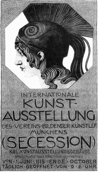 Академической живописи Антона фон Вернера или Вильгельма Блайбтроя» которую ценило и поддерживало государство, противостояли новые художественные течения, получавшие стимулы для развития г прежде всего из Франции, например символизм, импрессионизм, модерн. Основанные в 1892 г. в Мюнхене и в 1898 г. в Берлине «Сецессионы» были союзами художников, в которые входили такие представители модерна, как Ловис Коринт, Франц фон Штук и Макс Либерман. Выполненные ими выставочные плакаты в своей стилизованной простоте представляли собой осознанный контраст с «вильгельминизмом».