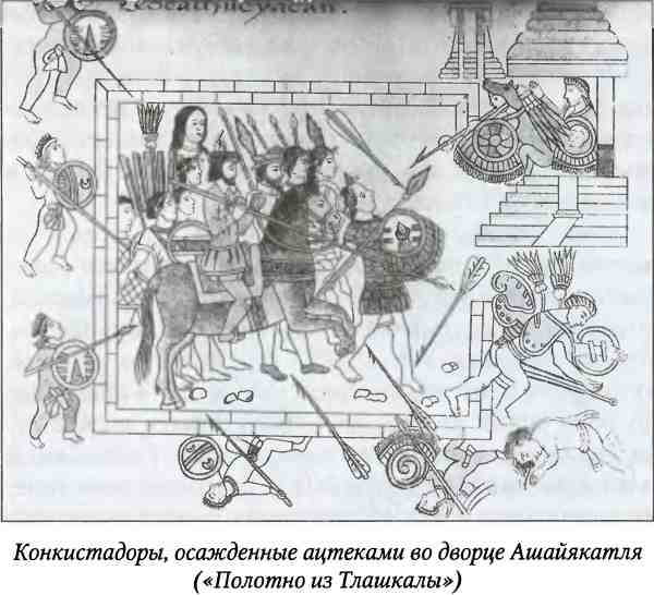 С этого дня дворец Ашайякатля превратился в осажденную крепость. Все подходы к нему контролировались индейцами. Запасы продовольствия и пороха у конкистадоров быстро истощались. Они несли большие потери в ежедневных ожесточенных столкновениях с бесчисленными врагами.