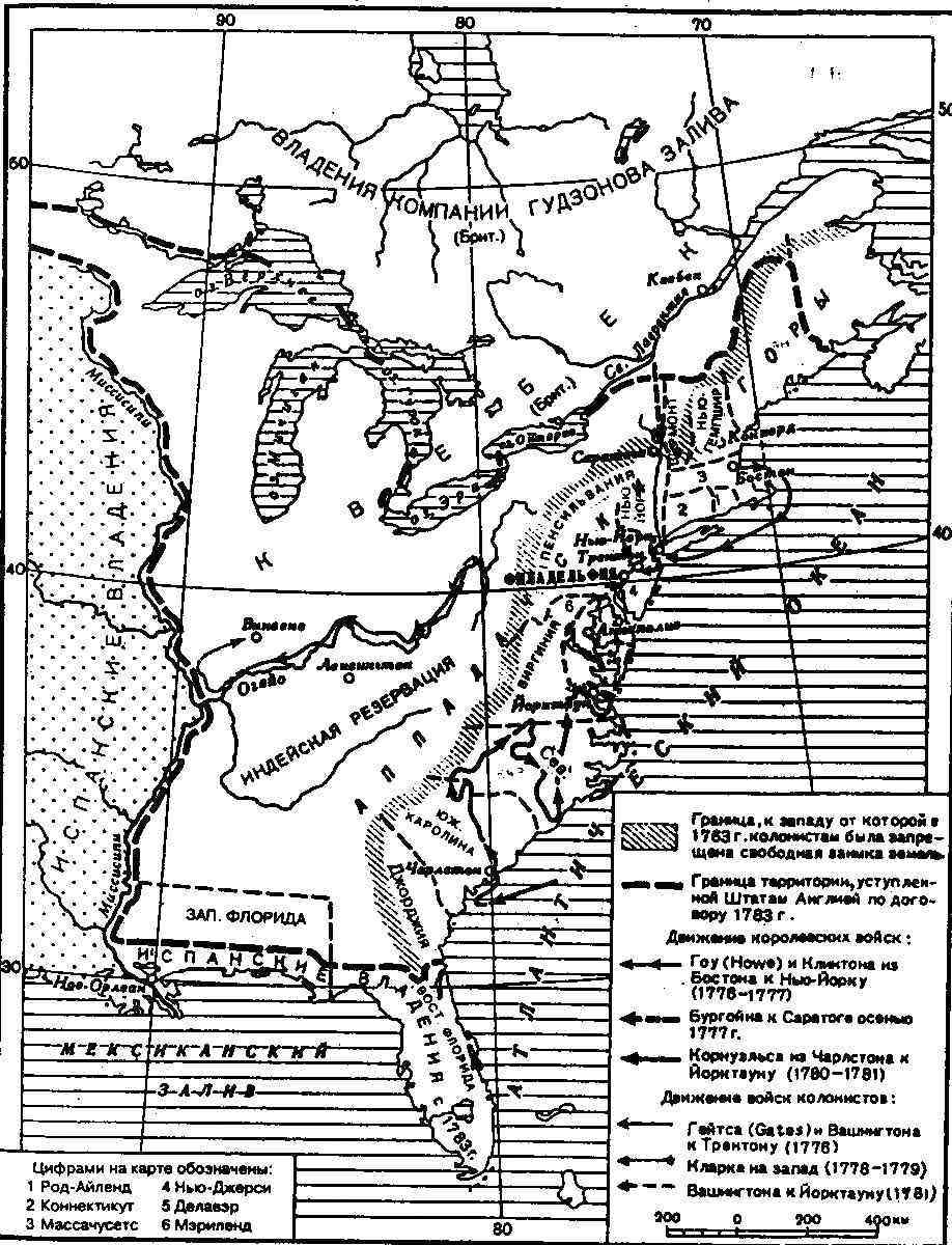 Карта. Война Северо-Американских колоний Англии за независимость
