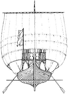 Многие скандинавские суда несли на носу и корме богато орнаментированные башни с зубцами по типу крепостных. Это были, по существу, поднятые платформы (кастли) с ограждениями для арбалетчиков и пращников (носовая башня — форкастль, кормовая — ахтеркастль). С правого борта крепилось рулевое весло традиционной скандинавской формы.
