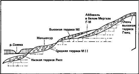 Террасы реки Соммы на севере Франции и археологические находки в их отложениях.
