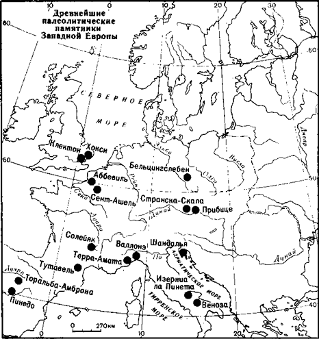 И в других странах Западной Европы имеются отдельные пункты с находками большой древности, время существования которых приближается к миллиону лет.