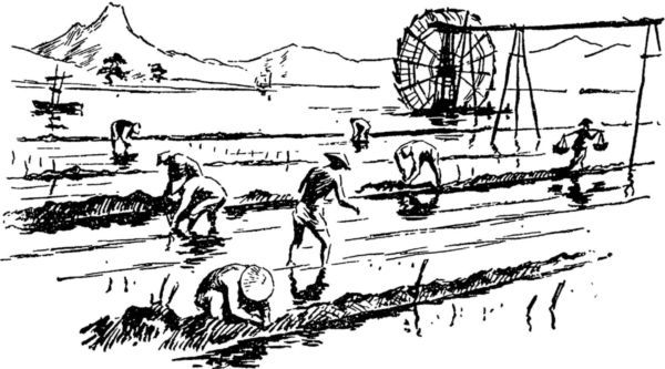 К такому колесу привязывали различные сосуды-черпаки. Они тоже погружались по очереди в воду, наполнялись, затем поднимались колесом наверх и сливали воду в желоба, откуда вода поступала на орошение полей.