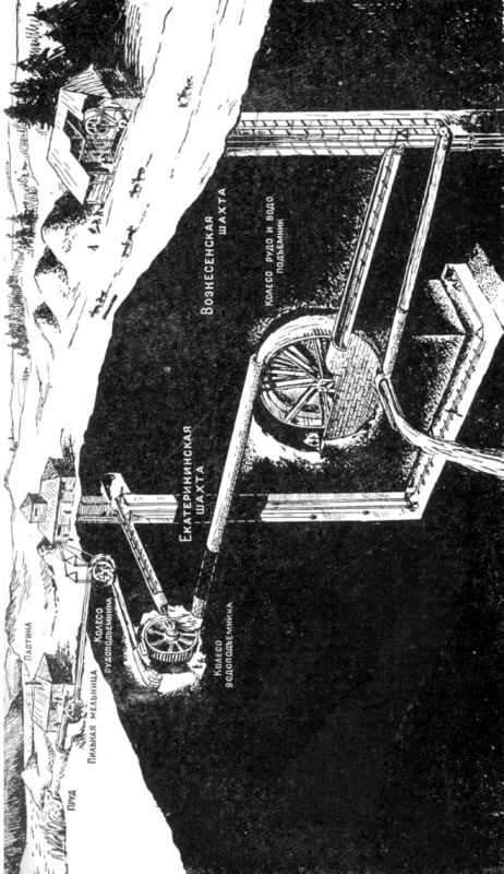 Во второй половине XVIII века на Змеиногорском руднике в Сибири Фролов соорудил мощную водосиловую установку.