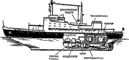 «Котел» атомного ледокола потребляет в сутки всего несколько десятков граммов «топлива». Поэтому весь запас его можно разместить в небольшом помещении. А вот если бы он ходил на угле, то для годового запаса топлива пришлось бы сооружать бункера фантастической величины… емкостью в 300 000 тонн! А ведь все водоизмещение ледокола «Ленин» около 16 000 тонн!