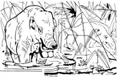 Вдоль берега шел мастодонт. Уродливейшее на свете создание. Туловище слона. Короткая тяжелая верхняя губа, свисающая на громадную лопатовидную челюсть. Короткие округлые бивни. В мире не было зверя, хотя бы отдаленно похожего на этого монстра. Мастодонт был голоден. Своей лопатовидной нижней челюстью он выкапывал растения, за раз подхватывая целый ворох стеблей. Не все приходилось ему по вкусу, и неаппетитные травы он сбрасывал с «лопаты» языком; сочные же клубни попадали в пасть, и массивные коренные зубы перетирали их в мягкую кашицу.