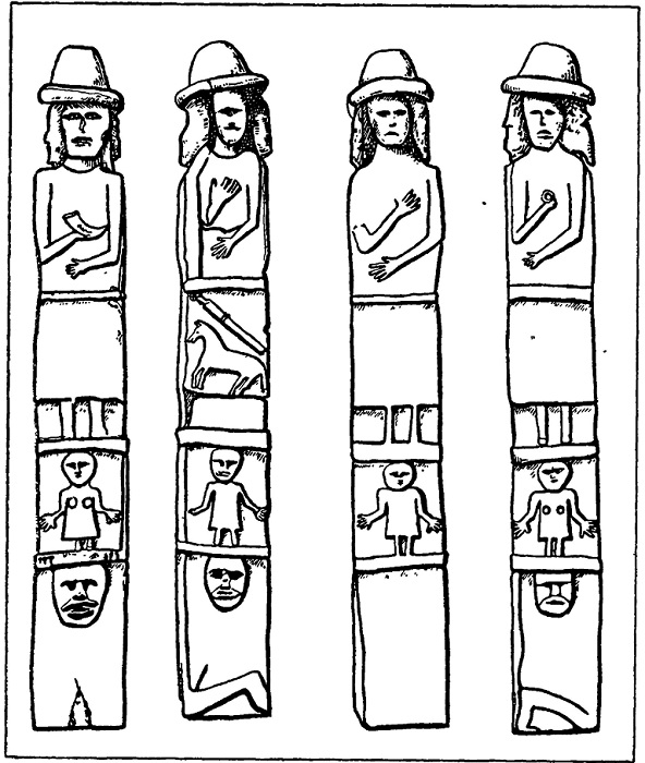 Каменная статуя славянского божества была найдена в середине XIX в. в реке Збруч, притоке Днестра. Четырехгранный столб из серого известняка высотой 2,67 м увенчан изображением четырехликого и четырехтелого божества под одной шапкой. На одной стороне женский персонаж держит в руке кольцо, на другой — питьевой рог, на третьей — мужской персонаж с саблей у пояса (оружие, не характерное для древних славян) и изображение коня, на четвертой божество лишено специальных символов. Средний фриз изображает хоровод из двух женских и двух мужских фигур, держащихся за руки; нижний фриз несет изображения трех фигур, поддерживающих руками верхние ярусы; к свободной от изображений стороне нижнего фриза мог примыкать жертвенник. Идол олицетворял славянский пантеон — высших мужских и женских богов верхнего — небесного мира, духов и людей среднего, земного, мира, поддерживающих землю существ преисподней.
