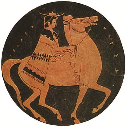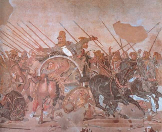 Греческий всадник. Роспись внутренней стороны килика, ок. V века до н. э. Персидская армия была построена в две линии: в первой располагалась пехота, а во второй – вспомогательные войска. Дарий вместе со своей конницей находился в центре боевого порядка. Сначала он послал вперед всю первую боевую линию. Завязался упорный, кровопролитный бой на левом фланге персов. Вскоре македоняне прорвали фронт между левым крылом и центром персидской армии, после чего Александр приказал коннице и одной из фаланг построиться клином и отпр авил их в образовавшийся прорыв. Это внезапное нападение решило исход боя. Поражение в битве при Гавгамелах стало роковым для владычества Дария. Александр двинулся на юг, чтобы захватить сначала Вавилон, затем Сузы и, наконец, – Персеполь. Македонцы пожинали плоды своей великой победы. Вскоре началось преследование персов, и мало кто из них остался в живых. Несмотря на численное превосходство, персы потерпели сокрушительное поражение. Александр приложил огромные усилия, чтобы взять Дария в плен, но тщетно, потому что полководец Дарий бежал, бросив свою армию. Македонцам удалось захватить только колесницу персидского военачальника, его щит, лук, сокровища и обоз.