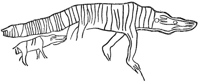 Рис. 3. Наскальный рисунок, изображающий крокодила (обнаружен проф. Фробениусом).