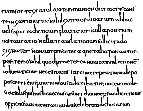 В латинском письме разделение слов точками или с помощью пробелов производилось отчасти уже в древности, но было неустойчивым, и в средние века здесь сохранялась известная непоследовательность. Пунктуация в современном смысле, включая двоеточие, вопросительный знак, кавычки и т. д., установилась повсюду лишь с изобретением книгопечатания.