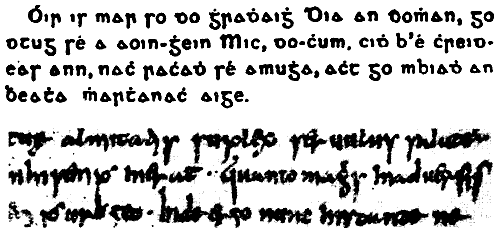 По папирусам и христианской литературе VII–VIII вв. известен так называемый полуунциал. С распространением христианского учения это письмо попало в Ирландию, где на его основе образовался ирландский тип письма, известный по ирландским рукописям и который благодаря основанным ирландцами монастырям стал употребляться и на материке. Молодая Ирландская республика вновь попыталась возродить этот вид письма в качестве ирландского национального. От ирландского в Британии образовался англосаксонский п?шиб.