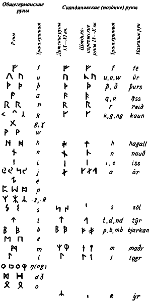 Рис. 202. Общегерманский и скандинавский рунические алфавиты.