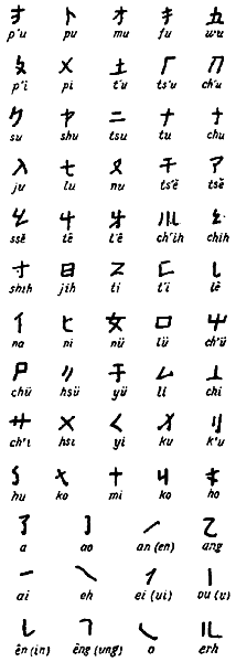 Следует сказать несколько слов о том, как китайцы отображают средствами своего письма европейские слова и названия. Понятийное письмо в основном нефонетического характера не приспособлено для передачи иноязычных звучаний. Если иноязычные географические названия не переводить прямо на китайский как «Красное море», «Снежные горы» (Гималаи) или «Львиная страна» — Simhala (Шри-Ланка), то приходится их более или менее произвольно разлагать на слоги и в известной степени приблизительно отображать эти слоги сходно звучащими китайскими словесными знаками и комбинациями этих знаков. Так, говорят и пишут Оулоба «Европа», Хэлань-го «Голландия», Ямэйлицзя «Америка», Фаланьси-го «Франция», Дэи-чжи-го «Германия» и др. Конечно, такие передачи весьма неточны, но выход из этого положения предлагают китайские газеты, которые иногда вставляют в китайский текст европейские наименования, отпечатанные латинским шрифтом. Между двумя столь различными системами письма невозможно навести мосты. Как ни привязаны китайцы к своей пришедшей из глубокой древности письменности, они уже давно знакомы с более простыми системами письма. Прежде всего, уже много веков назад они благодаря буддизму познакомились с деванагари, а теперь во все возрастающем масштабе знакомятся с латинским письмом, — так что они вполне могли убедиться в преимуществах этих более простых систем. Следовательно, неудивительно, что нет недостатка в попытках заменить сложное китайское словесное письмо более простым фонетическим письмом слогового или звукового характера.